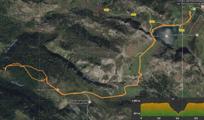 El punto de partida para acceder a este bosque es el lago Enol, y la senda que conduce desde allí hasta el Mirador del Rey es muy cómoda. A partir de este punto comenzará nuestro descenso a el bosque que ocupa una ladera del valle de Pelabarda, El bosque de Pome es una valiosa masa forestal donde predomina el Haya, pero hay robles, acebos, castaños, abedules, fresnos y otros y con una flora autóctona muy rica y variada. Se trata de una de las zonas donde las especies protegidas habitan (rebeco o gamuza, corzo,urogallo…) aunque por la escasez de su número son difíciles de avistar. Si surge cualquier duda sobre la dirección a tomar debemos ir, siempre hacia la izquierda. Cuando crucemos el bosque llegaremos a la unión de los ríos Pelabarda y Pomperi, donde hay un puente y final del camino. Desde este punto daremos la vuelta.
